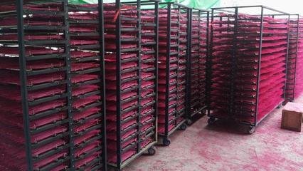 四、表面积: 烘干过程中,所烘物料与空气接触的表面积越大,水分被带走的速度就更快,另外物料摆放的密度过大过厚,也会造成对烘干品质的影响,所以要均匀摆放,留有通风的间隙,合理的摆放在提高烘干速率的同时节能程度也最大。